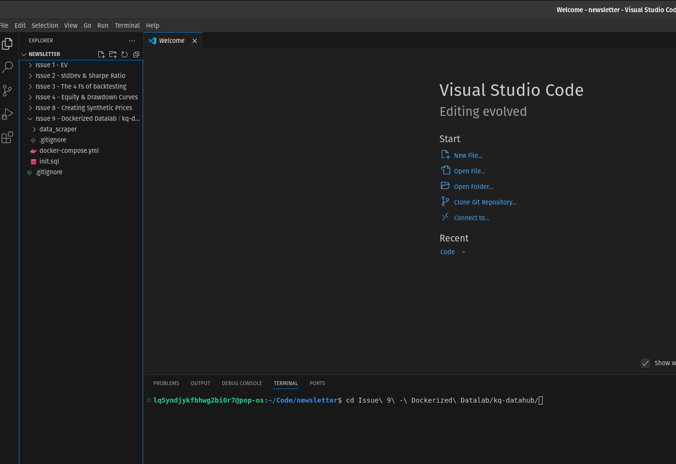 git clone https://github.com/KatanaQuant/newsletter.gitand then open it in VSCode. You can either open the full repository and then change the working directory manually to Issue 9 or just open the Issue 9 directory.