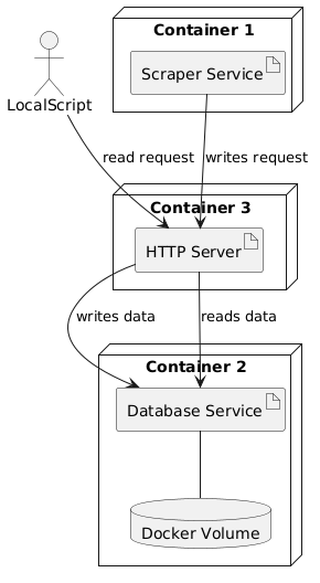 If you want to inspect the data after it got written to the database, you can either use GUI tools like dbeaver or just connect via terminal over localhost. For you to be able to connect to the database it has to be started via docker first. To avoid refetching insane amounts of data after the initial fetch is done, you can simply comment out the scraper in the docker-compose.yml file for now: