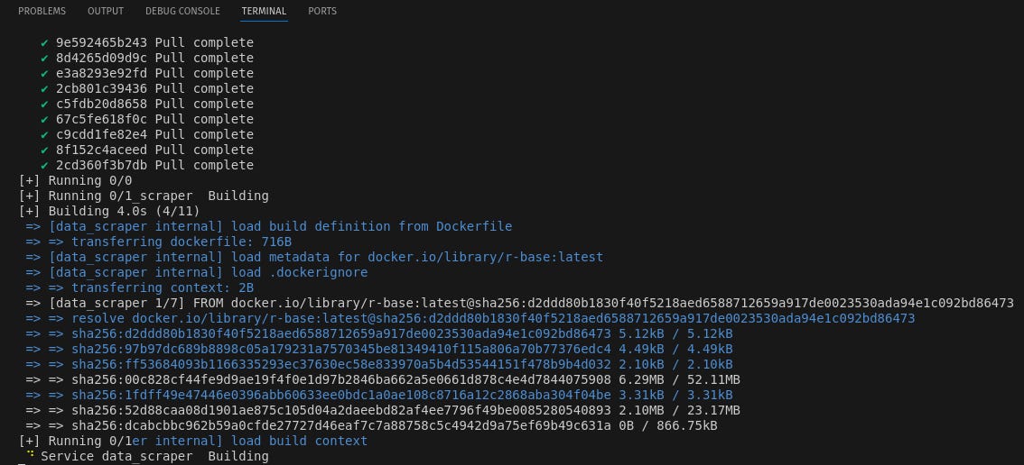 CMD ["Rscript", "fetch_data.r"]Docker comes with its own CLI and its command palette is straightforward. To build and run containers from a Dockerfile you simply type in